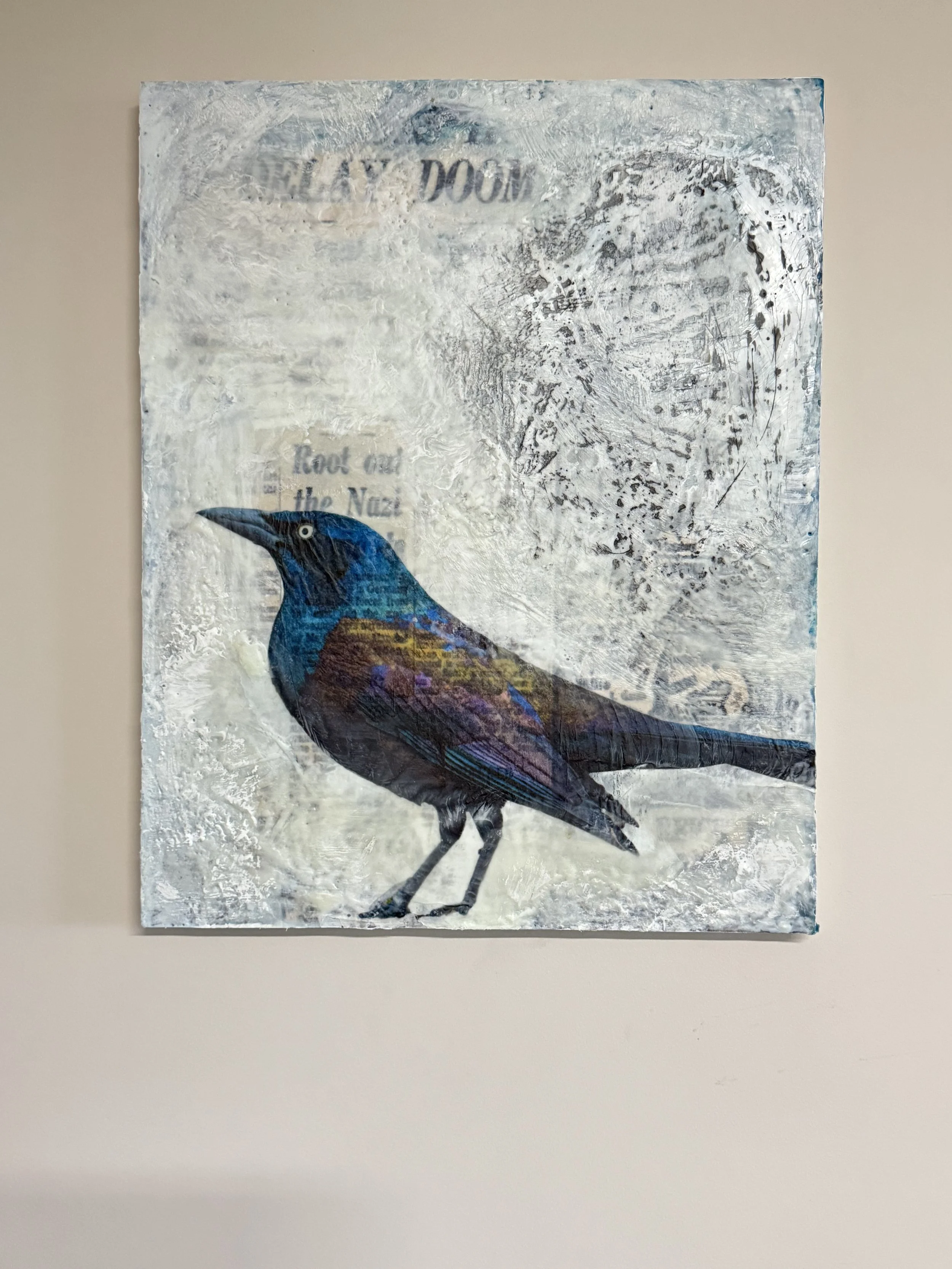 This mixed media series began as my response to the 2016 presidential election and all the talk about building a wall to keep “undesirables” out of our country. It made me think about my heritage and how my family came to the United States in the early 1940s as refugees from WWII, as “stateless former Germans.” My mother has told me stories about her Jewish family’s escape from Berlin when she was a young child. She and her four siblings were taken in by families in France and Holland, who hid them during the war until they were able to leave Europe. They travelled by boat, “The Winnipeg”, to St. Thomas in the Virgin Islands, and from there to Puerto Rico and then to Ellis Island. I uncovered photographs of my family from before this period, which inspired this series. In the photographs I found, the children seem innocent and happy, living normal lives, not knowing what was to come. I am struck by how similar things seem today, and how vulnerable families must feel about the unknown future of our country.